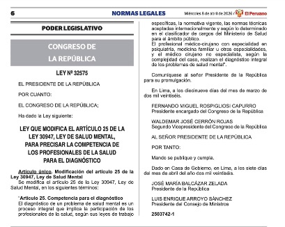 Mientras los candidatos discutían en debates mal estructurados y solo algunos de ellos ponían énfasis en la necesidad de atender los problemas de salud mental en el Perú —donde uno de cada cuatro peruanos experimenta trastornos mentales a lo largo de su vida, cifra que se ha incrementado tras la pandemia con la depresión y la ansiedad—, el Ministerio de Salud (MINSA) reportaba, en 2024, más de 1,3 millones de casos. Frente a esta situación, el Congreso aprobaba la Ley N.° 32575, “Ley que modifica el artículo 25 de la Ley 30947, Ley de Salud Mental, para precisar la competencia de los profesionales de la salud para el diagnóstico”.