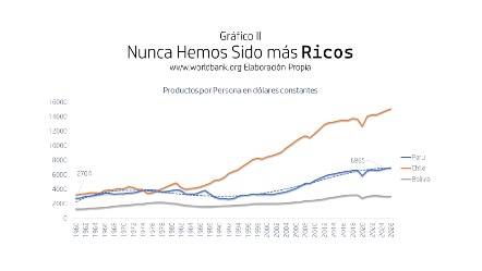 Bolivia (la mitad del Perú), Perú y Chile (el doble del Perú), se atrasan comparándonos con una nación que registraba productos por persona grosso modo similares en 1960 y que desde entonces se desarrolló (Singapur), debe quedarnos claro la magnitud y recurrencia de nuestro fracaso.