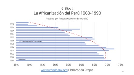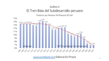 El Perú se subdesarrolló severamente en su lapso completo de vigencia (gobiernos de Velasco, Morales Bermúdez y de la espuria Constitución política de 1979). Los datos nos exponen a la realidad (ver gráficos I y II).