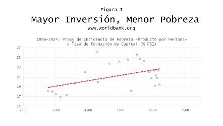 - Aquí, en el lapso post 2011, la tasa de inversión explica nuestro producto por persona; y éste resulta la variable impajaritablemente asociada con nuestra tasa de incidencia de pobreza. Tanto a nivel nacional, regional y departamental. La figura I muestra implacablemente la asociación a nivel agregado. Recuerde, la nueva inversión beneficia a los más pobres. No siempre a los ricos. Que los afiebrados activistas de izquierda le hayan hecho creer todo lo contrario no cambia nada. La data mata al floro.
