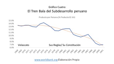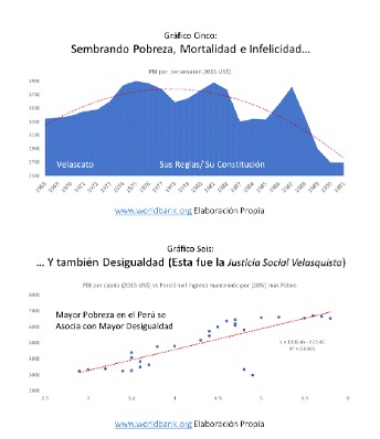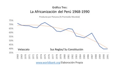 Pero si usted ya comienza a interiorizar que el velascato se vende en modo fraude ideológico; o que éste trajo una enorme desgracia económica a millones de peruanos, enfoque directamente como lo producido por peruano (esa variable significativamente correlacionada con la incidencia de pobreza y la felicidad humana) se derrumba con la maduración de la reformas estructurales auspiciadas por la penosa intelectualidad limeña de la época. Mentes poco originales que consciente –e incluso inconscientemente– abrazaron el socialismo mercantilista latinoamericano como la única teoría económica aplicable en la región.