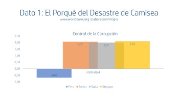 Para graficar con datos peruanos por qué se da el desastre de Camisea entendamos (ver Dato 1) la postración institucional en la que vivimos en comparación con naciones con burocracia mucho más decente como Suecia, Suiza o Singapur. Ellos no solo son diez veces más desarrollados, allá la burocracia no corrupta impide que los ductos se quiebren por causas evitables, que se materialice el grueso de los atentados, o no exista un Plan B ante situaciones inesperadas.