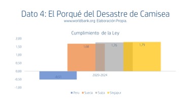 Aquí, abundan los supuestos expertos que diferencian la ilegalidad de la informalidad. Con los estimados de cumplimento de la ley comparados en el gráfico, algo nos debe quedar claro. En el Perú actual las Leyes pueden ser incumplidas. Y si esto es así, lo que acaba de suceder en Camisea es algo lógico. Previsible. No es ilógico que hoy en el caso de Camisea no exista un Plan B y hasta que no existan responsables… y/o que el grueso de los medios de comunicación solo tome el evento como un escandalito politiquero para exacerbar la frustración pre electoral. Como algo útil para incrementar audiencias, temporalmente.