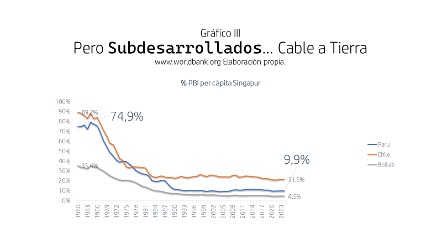Bolivia (la mitad del Perú), Perú y Chile (el doble del Perú), se atrasan comparándonos con una nación que registraba productos por persona grosso modo similares en 1960 y que desde entonces se desarrolló (Singapur), debe quedarnos claro la magnitud y recurrencia de nuestro fracaso.