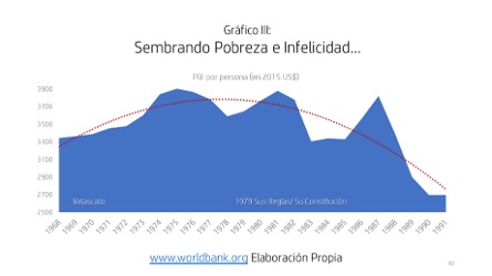El Perú se subdesarrolló severamente en su lapso completo de vigencia (gobiernos de Velasco, Morales Bermúdez y de la espuria Constitución política de 1979). Los datos nos exponen a la realidad (ver gráficos I y II).