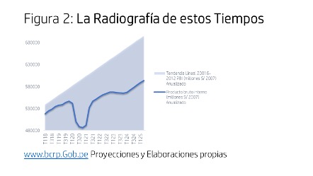 Con doña Dina no estamos en el camino de una mejora notable –un 3% anual no nos acerca al desarrollo económico–; ni a una recuperación completa respecto al despeñadero al que nos llevaba Castillo Terrones y sus colaboradores. Aunque hablemos hoy de una recuperación parcial, caímos en un profundo hoyo macro e institucional. Hoy hemos escapado de la recesión, pero nos quedamos postrados 15%, por debajo de la tendencia lineal. De esto nadie habla hoy.