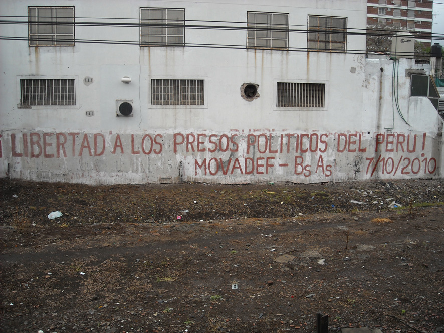Las instituciones del estado encargadas deberían estar atentas a las movidas de los militantes del Movadef. (Pintas del Movadef en "Base Buenos Aires - Argentina" según su blogspot "oficial". Publicado el 14 de octubre del 2010)